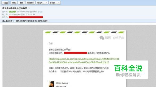 激活邮箱 点击登录邮箱后,在收件箱里会找到一封邮件名为:激活你的微信公众平台账号的邮件,点击打开,按照邮件内容提示进行操作,点击链接激活邮箱,如图,