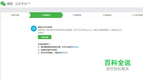 发送激活邮件 点击注册后,微信公众平台系统会发送一封邮件到您的注册邮箱里,点击登录邮箱,如图