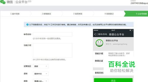填写账号信息、功能介绍以及地区,如图,按照要求填写即可