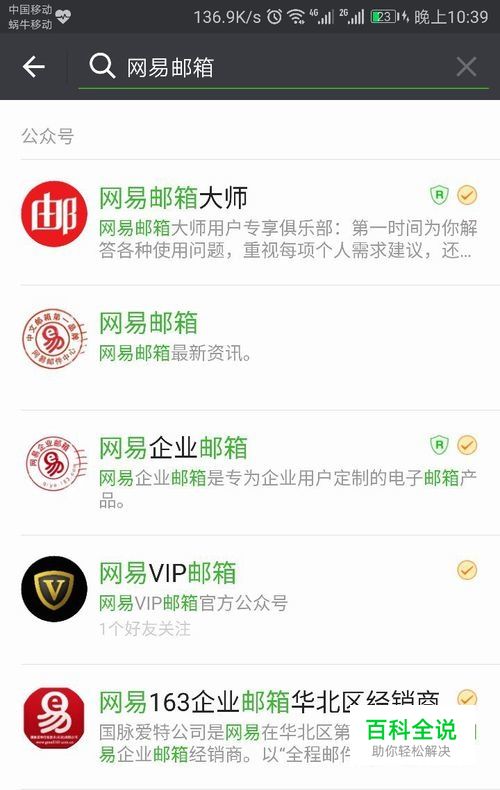 下面就搜索到了一些相关的微信公众号,在面直接找打第三个“网易企业邮箱”网易企业邮箱是为企业用户定制的电子邮箱产品,直接点击打开网易企业邮箱
