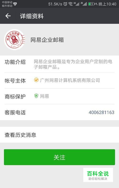 现在就打开老外网易企业邮箱的详细资料,直接点击“关注”就可以了