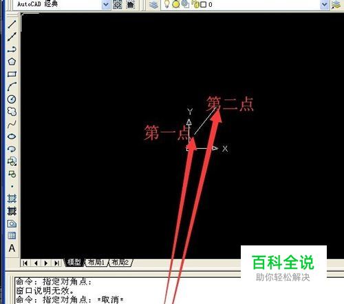 在命令栏输入第一个点的坐标中间用逗号分隔 在输入第二个点的坐标 按回车