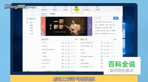 打开电脑版“PP助手”,点击上方“铃声壁纸”选项。