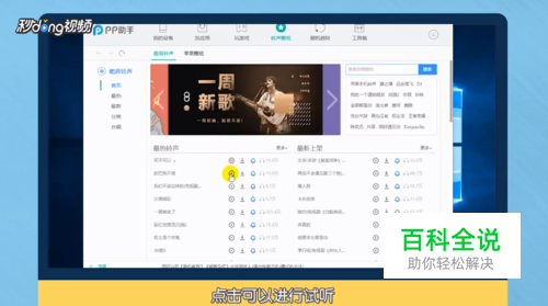 在该页面可看到很多热门铃声,点击可以进行试听。