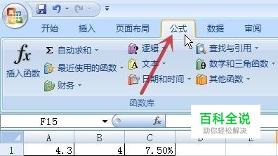 用鼠标左键单击界面顶端的“公式”选项卡(图中红色箭头所指)