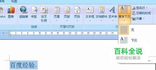 点击“首字下沉”,可以选择出现方框的第二项“下沉”,效果如图所示。