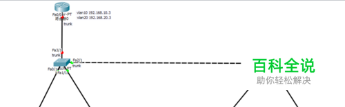 在路由器上为vlan配置虚拟端口,并在端口上封装trunk协议,如图