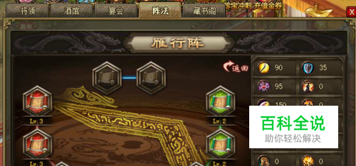 基本配置如下: 神兵200,192,200。9珍宝,二车满,月英没有觉醒,御宝3红甲一红枪。阵法雁形阵用不上可以把高等级兵书给方圆阵或者锋矢阵