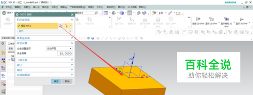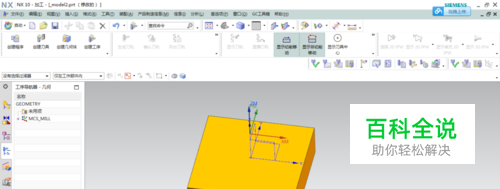 建立一个正方体模型,进入加工模块。创建工件坐标系,创建几何部件和毛坯体。操作如图。