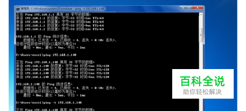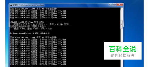 向指定计算机发送数据检测本地网络 在命令提示符窗口输入命令ping -t 192.168.1.148