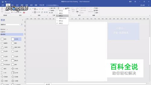 首先我们打开Visio软件,点击开始,点击指针工具旁的下拉菜单,选择线条。