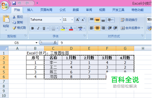 2、依次选择“插入”-“柱形图”-“三维圆柱图”
