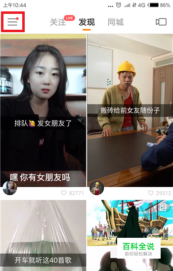 快手给别人设置备注名的话必须是关注的人才可以,进入到快手后在首页中点击左上角的【三】按钮。