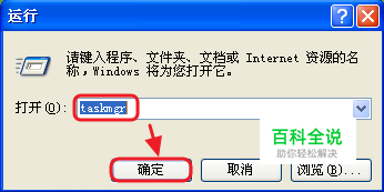 在“运行”界面的输入框中输入“taskmgr”,点击"确定"按钮,打开“任务管理器”。