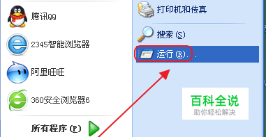 用鼠标左键单击电脑左下角“开始”,在弹出的菜单中选择“运行”,打开运行界面。