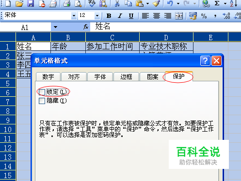 我们再将需要保护的数据重新锁定,选中需要保护数据的那一个列,点击菜单中的“单元格设置”--“保护””--“锁定”然后把单元格属性中的“锁定”前面的勾打上;