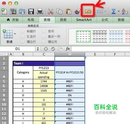 对表格进行删除、移动等操作后出现#REF!错误,在尚未保存此操作前,立即单击工具栏的『撤销』按钮,或按『Command+Z』组合键。