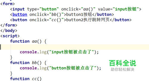 测试步骤三 代码中注释掉form标签,后执行3个按钮结果 点击input按钮,打印出 input按钮被点击了 点击button1按钮,打印出 button按钮被点击了 点击button2执行跳转网页,执行跳转网页