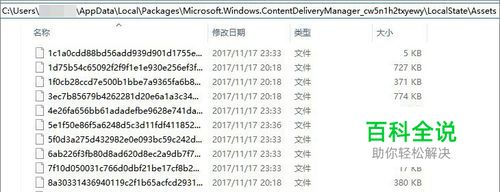 找到背景图片所在的位置 锁屏壁纸的路径藏得很深,访问起来有点麻烦,一般情况下,这些壁纸的路径为:C:\Users\(用户名) \ AppData\Local\Packages\ Microsoft.Windows.ContentDeliveryManager_cw5n1h2txyewy\LocalState\Assets,找起来有点繁琐,其中用户名为你自己电脑的用户名。