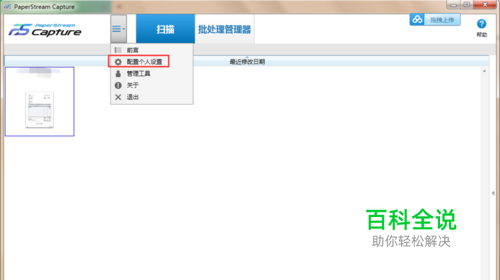 双击打开PaperStream Capture,点击上方的三个杠杠位置,点击,下方有配置个人设置。