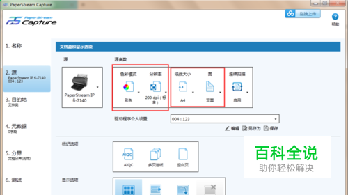 第二部设置源信息,主要就是选择分辨率、色彩模式、纸张大小、单双面进纸等等。