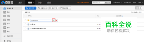 首先先点击百度网盘首页上的新建文件夹。为新建文件夹重命名,之后点击绿色的对号,创建文件夹成功。