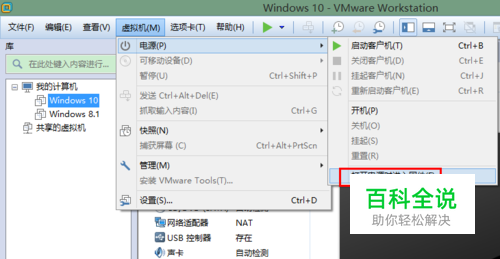 方法一:利用VM软件的菜单进入
