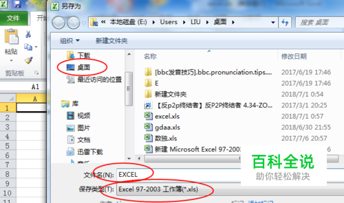 第一步我们需要一个正常的名为”EXCEL.xls“的 空白 excel文档。 首先我们通过桌面新建一个EXCEL文档,格式(xls或xlsx)与文档是否正确无所谓。接着打开我们刚建的excel文档选择文件\另存为:文件名”EXCEL“,文件类型”Excel 97-2003工作簿(*.xls)“,保存位置”桌面“。然后关闭这个excel文档,回到桌面打开试一下刚保存的”EXCEL.XLS“,文档正常则进行下一步。