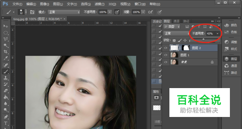 调整人像变白的程度。 通过调整不透明度,来确定人像脸的白皙度。