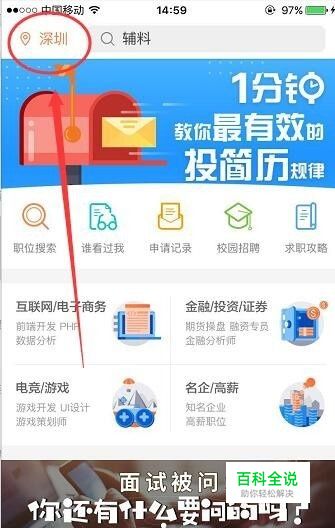 进入职位搜索,看到所在地点还是原来的深圳,那么我们点击这个地区进入选择地区页面,选择上海就可以了,操作如上