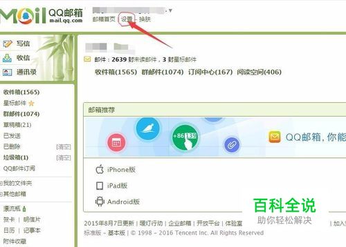 在邮箱进入后的首页左上角,如下图位置找到 设置