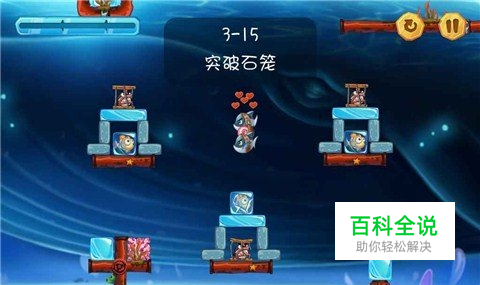 上方左右使用海螺,记住瞄准方向必须是正中央,不然会导致失衡让坏蛋鱼放出,下方的小鱼换用贝壳击碎!