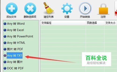 专业的迅捷转换器大家可以自行去下载安装好来,记得要下载新版的。然后打开迅捷转换器,开始需要找到转换项,这个在左边那些什么转什么那里。点击“any转txt”这个。