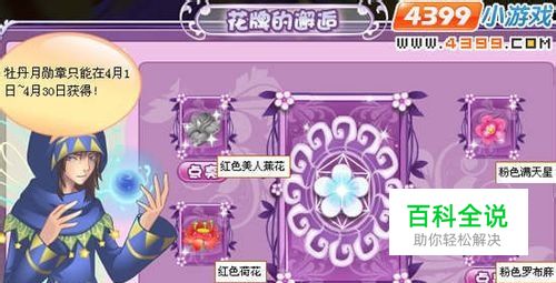 具体需要什么花来兑换牡丹月勋章呢,请看下图,需要15朵红色美人蕉花,15朵粉色满天星,15朵红色荷花,15朵粉色罗布麻。