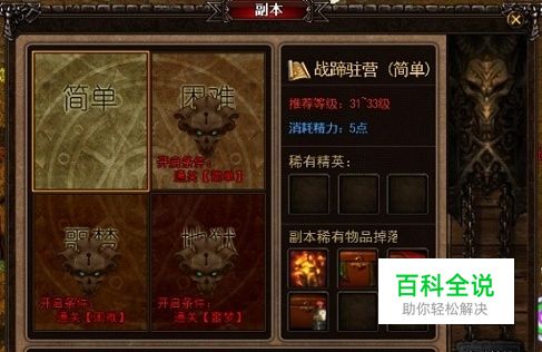 分析副本难度 游戏中的每一个副本都分为“简单”、“困难”、“噩梦”、“地狱”四个难度等级,分别掉落不同的材料,在高难度副本中,玩家还有机会遇到一些稀有精英,打败他们可以掉落许多稀有材料!玩家通关副本的唯一条件是铲除副本中的BOSS,通关后所获得的评分将决定此回通关可获得的奖励多少。成功通关后的副本还可以自动挂机,获取更多材料。