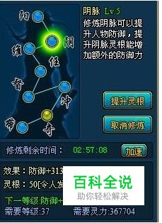 简单的介绍一下经脉的各个属性: 阳脉-提升气血值 阴脉-提升防御力 维脉-提升法力值 任脉-提升命中率 督脉-提升暴击率 冲脉-提升闪躲值 奇脉-提升攻击力 带脉-提升全抗属性 经脉提供升级的属性是非常多和可观的,为了能在打怪和PK中立于不败之地,修 炼每一个经脉都是很有好处的,呵呵~~我也尝过很多甜头,尤其是全抗属性 的修 炼,由于前中期的装备属性可能不太高,为了在PK中获得优势,则修 炼全抗属性的用处就能体现出来,能增加PK的抗性防御,人家怎么打都不掉血,嘿嘿, 很强的!