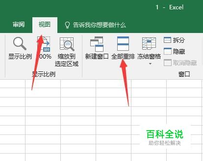 点击视图,接着点击全部重排。打开其中一个excel表格,然后点击视图,接着再点击全部重排,这时候就能进行设置了。