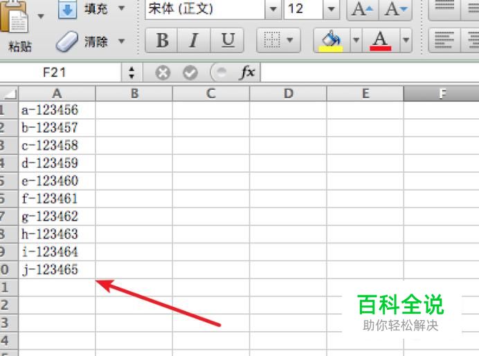打开excel,并打开一个文档,看到A列数据由一些字母和数字组成,现要把它的数字提取出来。