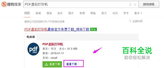 我们先安装虚拟打印机软件,我们在浏览器上输入“PDF虚拟打印机”,如图。