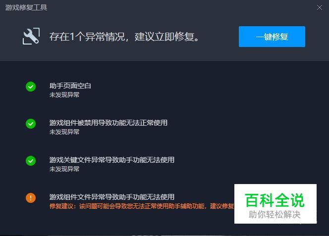 接下来就会弹出一个窗口,自动检测游戏存在的问题。