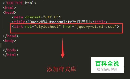 接下来在script中添加jquery的脚本库文本,如下图所示,智能提示的相关功能都在jquery-ui.min.js文件中