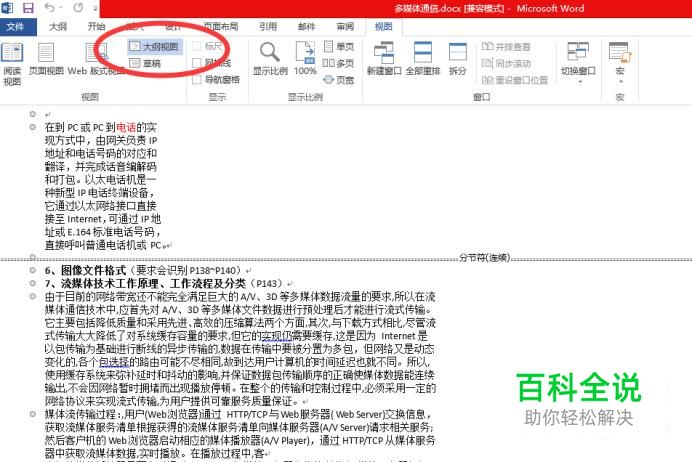 然后点击大纲视图。