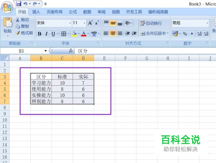 选中该表格,如图所示;