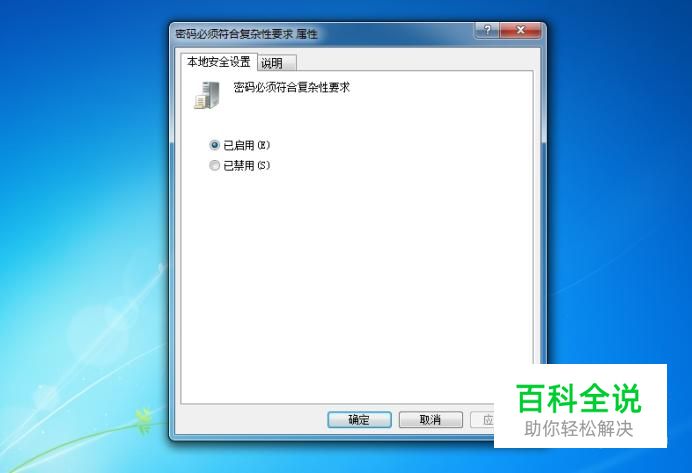 然后在“密码必须符合复杂性的要求属性”中,点击“已启用”,并点击“确定”