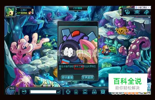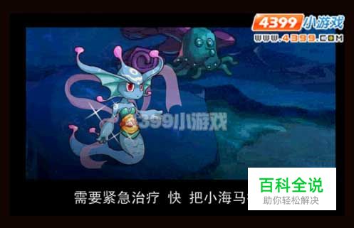 一路跟着小海马来到幽静珊瑚穴,点击小海马出现两个图标,小白告诉大家,要先点击上面的石头封锁路口,才能用下面的绳子抓住逃跑的小海马哦!抓住小海马之后,赶紧送回深水之城吧!小海马需要治疗,巴蒂还在等着我们呢!