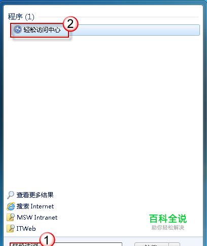 在开始搜索框中输入“轻松访问”,单击打开“轻松访问中心”。