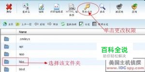 2、进入页面之后,我们选择需要修改的文件或文件夹(下面以bbs文件夹为例),然后在最上面的菜单栏中选择“更改许可”选项: