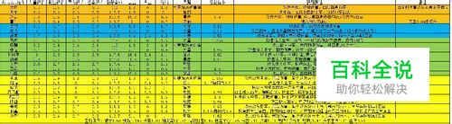 具体数值对比列表