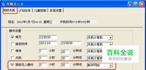 设置鼠标无人操作20分钟后断开网络:软件运行之后,进入到“定时关机”页面—“操作设置”—勾选“鼠标无人操作”—“时间自己设定20分钟后”—“断开网络”。