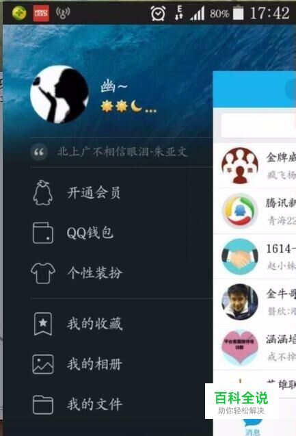 2.手动左划QQ对话框,找到手机QQ的设置按钮并且点击进入,如下图